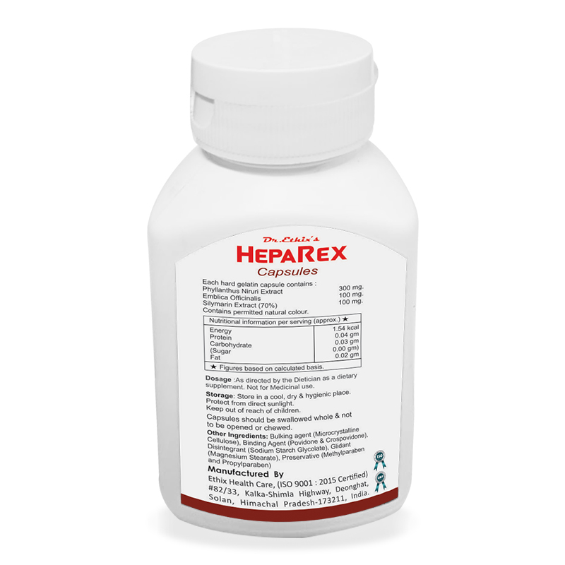 HepaRex Capsulesule is a natural, herbal supplement formulated to support liver health and promote detoxification. It combines three traditional and unique ingredients, each known for its liver-protective and rejuvenating properties. This powerful blend helps to enhance liver function, improve digestion, and support overall vitality.